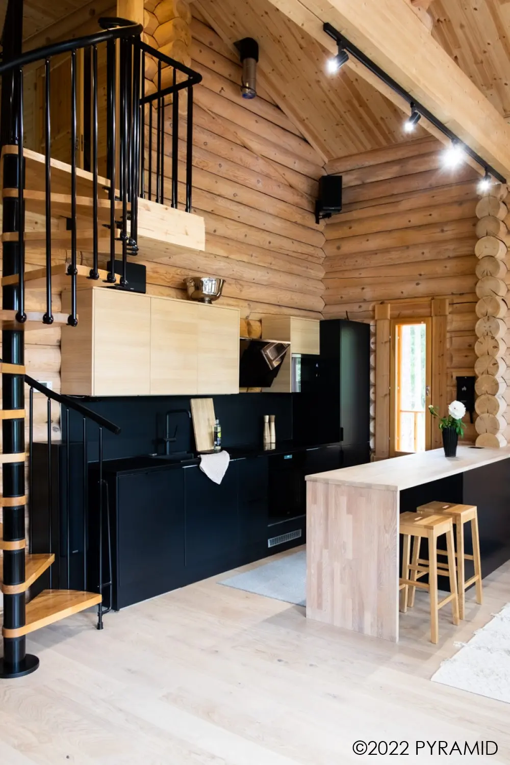 らせん階段 らせん階段 RING リング #2 ◆製 品 らせん階段RING (商品詳細はこちら) ◆MEMO 王道なログハウスの別荘へ螺旋階段RINGを納入した事例です。 開放的で広いダイニングキッチンの吹抜け部分から螺旋階段で2階へアクセスします。 ダイナミックな丸太小屋に黒の螺旋階段やキッチン、ガスストーブを配置した内装設計 によって、都会的で高級感のあるカントリースタイルの別荘建築が完成しています。 オンラインショップ 見積もりを依頼する